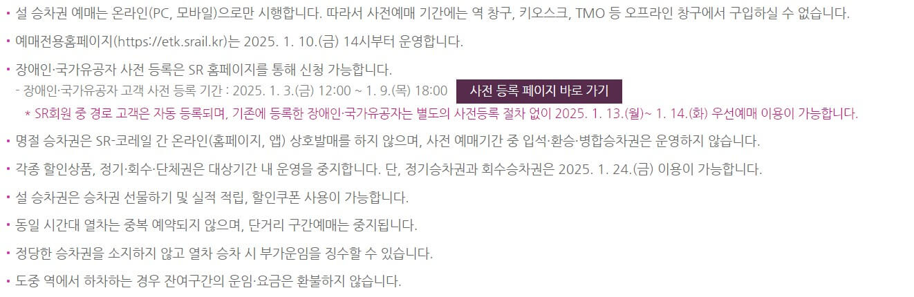 설 연휴 SRT를 타고 고향을 방문하시는 분들은 아래 기차표 예매 일정과 버튼을 통해 사전에 예약