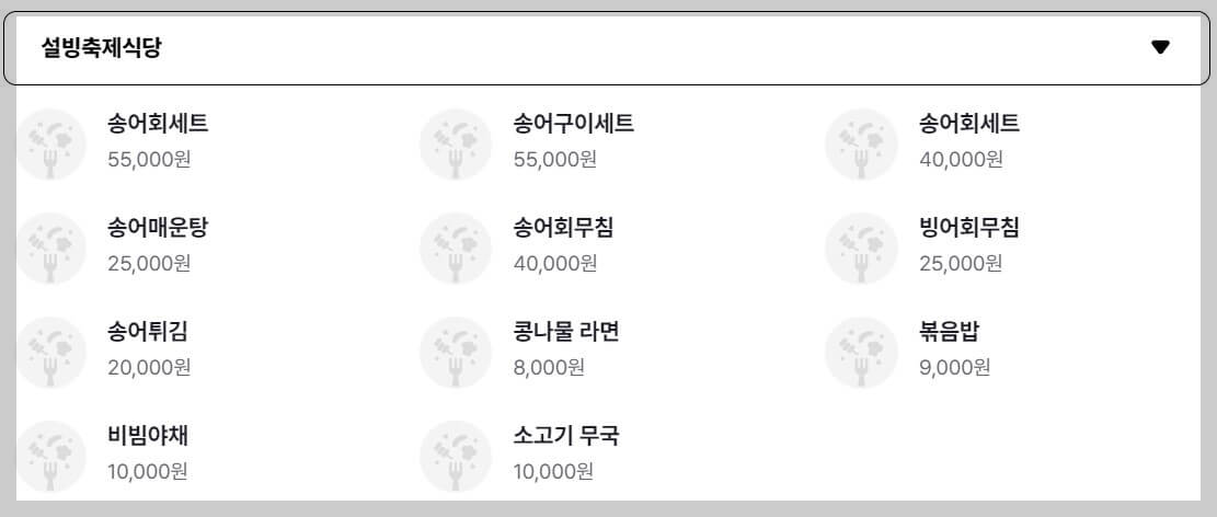- 먹거리의 경우 설빙축제식당, 회센터에서 드실 수 있습니다.